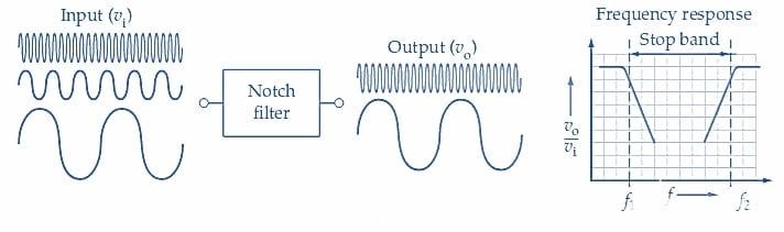 滤波选定的频带是使用设计有阻带的串联/并联谐振电路完成的。带阻滤波器通常用于去除特定频率(如60 Hz)的应用。
